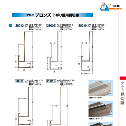 アルミ製下がり壁用見切縁 アルミD型17BR カラー:3色 長さ3m 創建
