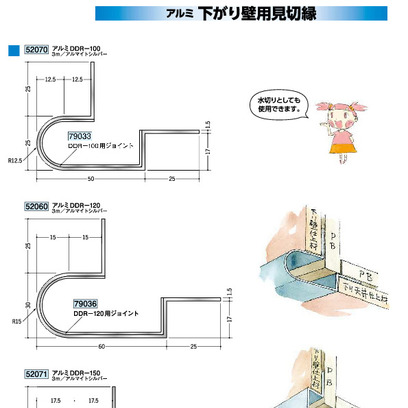 アルミ製下がり壁用見切縁 アルミDDR-100 本体/ジョイント/出隅/入隅 アルマイトシルバ-