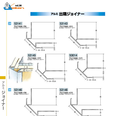 アルミ製出隅ジョイナー アルミDAM-725 アルマイトシルバー 長さ2.73m