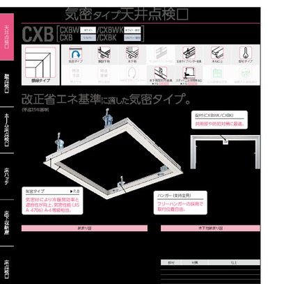 天井点検口シーリングハッチ気密タイプ CXB型 300/450/600/400×515角 シルバー