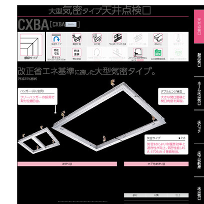 天井点検口シーリングハッチ大型気密タイプ CXBA 600×900角/900角/600×1200角 シルバー