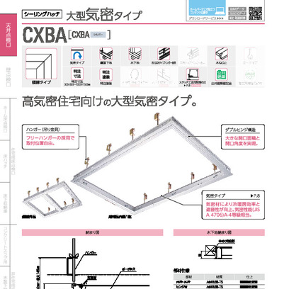 天井点検口シーリングハッチ大型気密タイプ CXBA型 600×900角/900角/600×1200角 シルバー