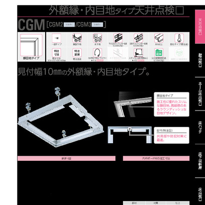 天井点検口シ-リングハッチ 外額縁・内目地タイプ CGW2 2型ハンガ- シルバー