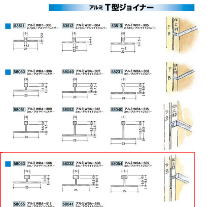 アルミ製T型ジョイナー アルミWBA-506 アルマイトシルバー 長さ3m~