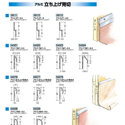 アルミ製立ち上げ見切 アルミTMC-3 アルマイトシルバー 長さ3m 創建