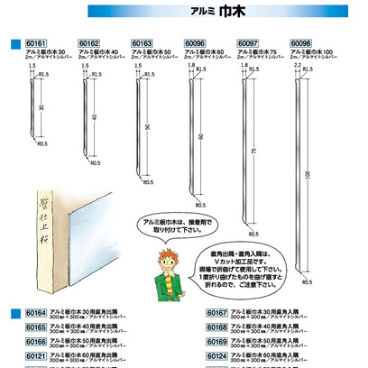 ・アルミ板巾木は、接着剤で取り付けて下さい。