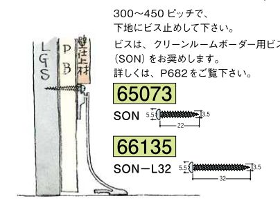 アルミ貼り巾木は300~450ピッチで下地にビス止めしてください。