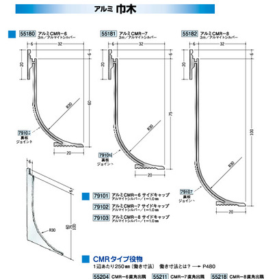 アルミ製巾木 アルミ貼り巾木アルミCMR-6~8 長さ3m/出隅/入隅/サイドキャップ アルマイトシルバー