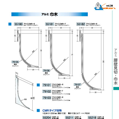 アルミ製巾木 アルミ巾木CMR-6 アルマイトシルバー 長さ3m/裏板ジョイント・直角出隅/直角入隅/サイドカバー