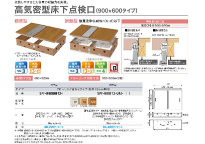 ●セット明細:点検口(枠)900×600タイプ1台(蓋部材)450×600タイプ2台 スライドコア15コ/キャップ15コ 中桟1コ 中桟受ブロック2コ 断熱パッキン2セット(断熱型のみ)