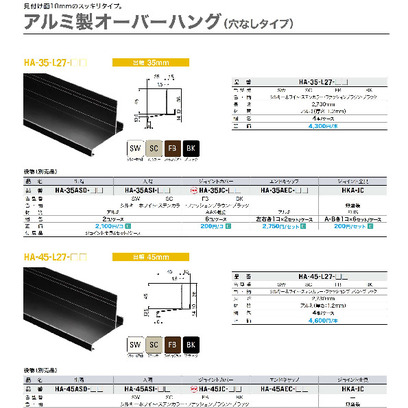 アルミ製オーバーハング 穴なしタイプ HA-55-L27 出幅55mm×2730mm