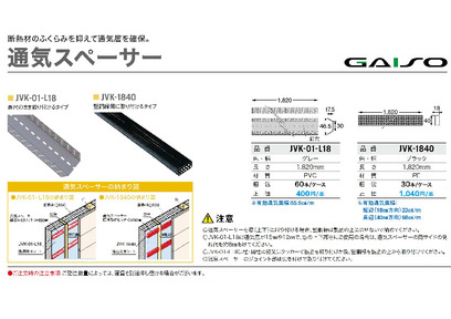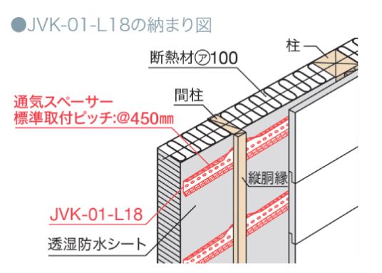 断熱材通気スペーサー JVK-01-L18 長さ1820mm《60本/ケース》