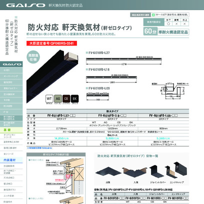 防火対応 軒天換気材(軒ゼロタイプ) FV-G016FD-L27(2730mm)/L09(910mm)5色