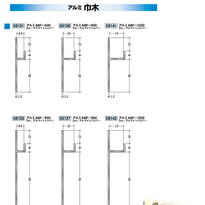 アルミ製巾木 アルミABF-630~1250 アルマイトシルバー 長さ3m