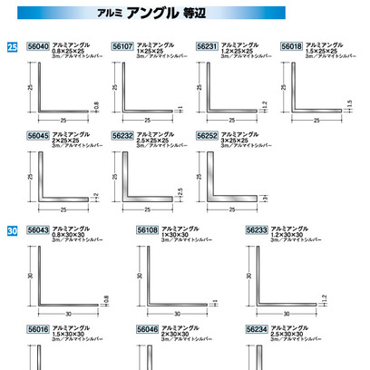 アルミ製アングル(等辺) アルミアングル0.8×25×25 アルマイトシルバ- 長さ3m