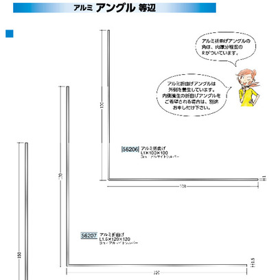 アルミ製アングル(等辺) アルミ折曲げL 厚1mm×100mm×100mm・120×120・150×150 アルマイトシルバー 長さ3m 創建