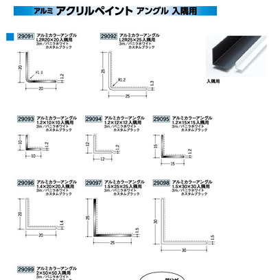 アルミ製アングル(アクリルペイント) アルミカラーアングル10mm×10mm~50mm×50mm入隅用 バニラホワイト・カスタムブラック 長さ3m