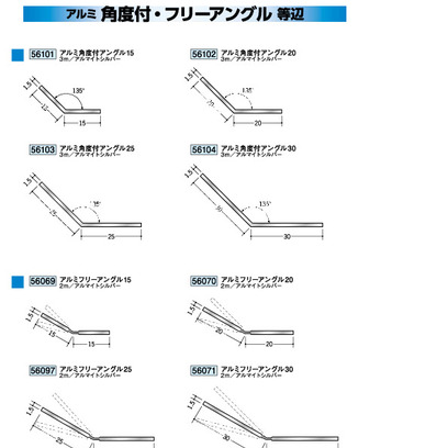 アルミ製角度付アングル(等辺) アルミ角度付アングル・フリーアングル 15mm×15mm~30mm×30mm アルマイトシルバー 長さ3m 創建