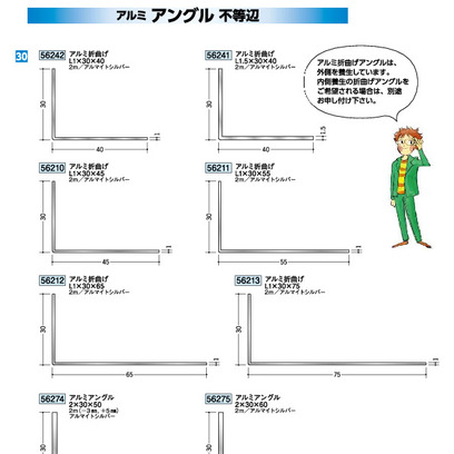 アルミ製アングル(不等辺) アルミ折曲げ・アングル30mm×40mm~35mm×70mm アルマイトシルバー 長さ2m 創建