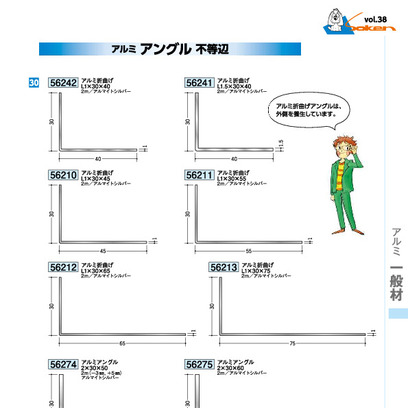 アルミ製アングル(不等辺) アルミ折曲げL1×30×40 アルマイトシルバー 長さ2m 創建