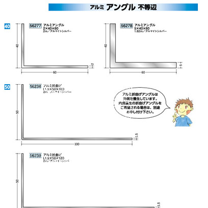 アルミ製アングル(不等辺) アルミア折り曲げ・アングル40mm×60mm~50mm×150mm アルマイトシルバー 長さ2m