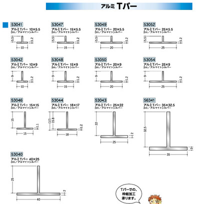 アルミ製Tバー アルミTバー10mm×5.5mm~40mm×25mm アルマイトシルバー 長さ3m