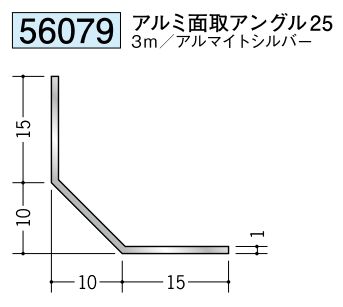 アルミカラ-チャンネル2×15×15BW 長さ2m