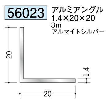 アルミカラ-チャンネル2×20×20BR 長さ2m