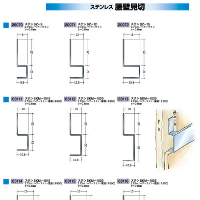 ステンレス製腰壁見切 ステンSKM 10.8mm×35mm×0.8mm~ 15.8mm×45mm×0.8mm ヘアーライン 長さ2.73m 創建