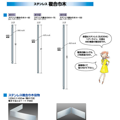 ステンレス製巾木 ステンレス複合巾木H 本体2m・直角出隅・直角入隅ヘアーライン 創建