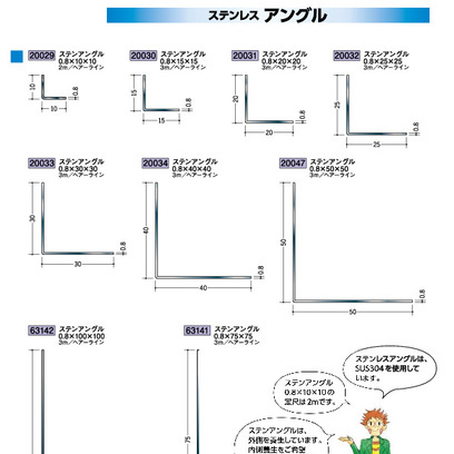 ステンレス製アングル ステンアングル0.8×10×10 ヘアーライン 長さ2m 創建