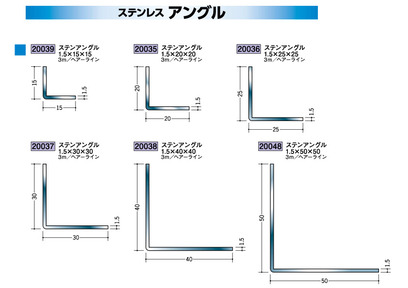 ステンレス製アングル ステンアングル1.5mm×15mm×15mm~1.5mm×50mm×50mm ヘアーライン 長さ3m 創建