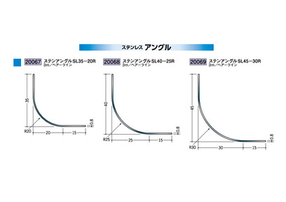 ステンレス製アングル ステンアングルSL35-20R~ SL45-30Rヘアーライン 長さ3m