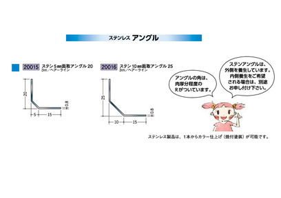 ステンレス製アングル ステン5mm面取アングル20・25 ヘアーライン 長さ3m 創建