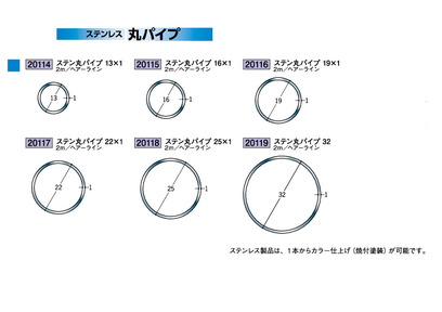 ステンレス製丸パイプ ステン丸パイプ13φ×1mm~32φ×1mm ヘアーライン 長さ2m 創建