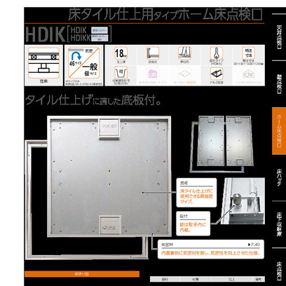 ホーム床点検口(18mm仕上げ・床タイル仕上用) HDIK 460/600角 シルバー ダイケン