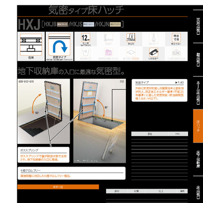 地下収納庫の入り口に最適な気密型。外枠に気密材を施し冷暖房効率と遮音性が向上。改省エネルギー基準(平成25年度)に適した気密性能(相当隙間面積0.6c㎡/㎡以下)