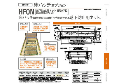 HXJ712型タイプ専用落下防止ネット。床ハッチ開放時に中の様子か確認できる落下防止用ネット。