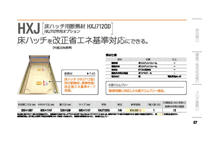 HXJ712型タイプ用断熱材。床ハッチを改正省エネ基準対応にできる。