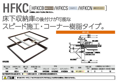 床下収納庫の後付けが可能な。スピード施工・コーナー樹脂タイプ