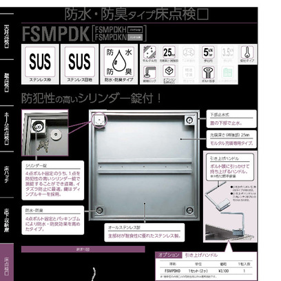 アンダーハッチ 防水・防臭タイプ 床点検口 FSMPDK 450/600角 ハンドル付・ハンドル無