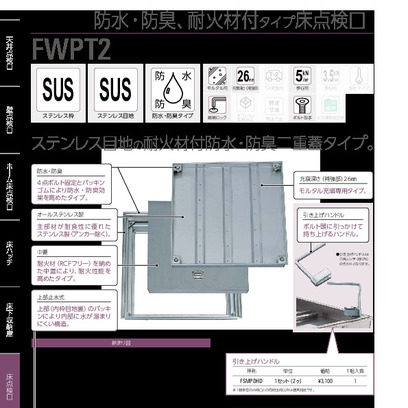 アンダ-ハッチ ステンレス枠防水・防臭・耐火材付タイプ FWPT275 ハンドル付