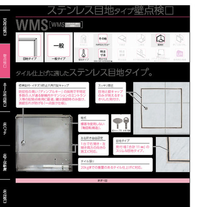 壁点検口 ステンレス鍵付 WMS 300角・450角 ヘアライン