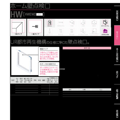 UR都市再生機構の仕様に準じた壁点検口。1枠タイプで壁仕上材 から木下地に向けての