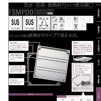 アンダーハッチ(ステンレス枠防水・防臭タイプ) FSMPDD(断熱材付き) 600角 ハンドル付・無【受注生産品】