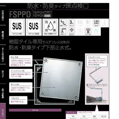 アンダーハッチ(ステンレス枠防水・防臭タイプ) FSPPD(樹脂タイル専用)450/600角 ハンドル付・無