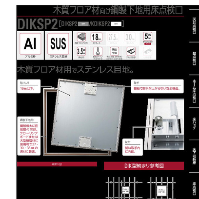鋼製下地用床点検口(木質フロアー材用でステンレス目地) DIKSP2 460/606角 鍵無・鍵付