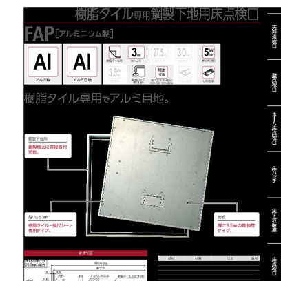 鋼製下地用床点検口(樹脂タイル専用・アルミ目地) FAP(アルミニウム製・高強度) 450/600角