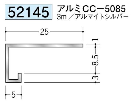 アルミ製コ型見切縁 アルミCC-5085 アルマイトシルバ- 長さ3m