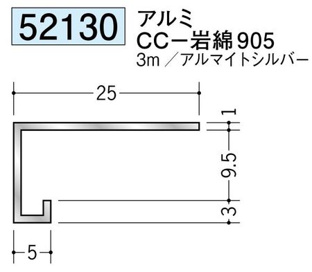 アルミ製コ型見切縁 アルミCC-岩瀬905 アルマイトシルバ- 長さ3m
